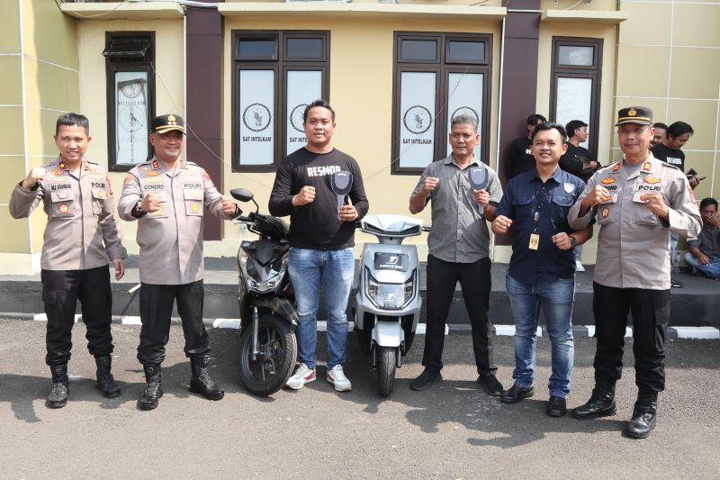 Kapolres Serang AKBP Condro Sasongko memberikan penghargaan kepada Tim Reserse Mobile (Resmob) dan personil Polsek …