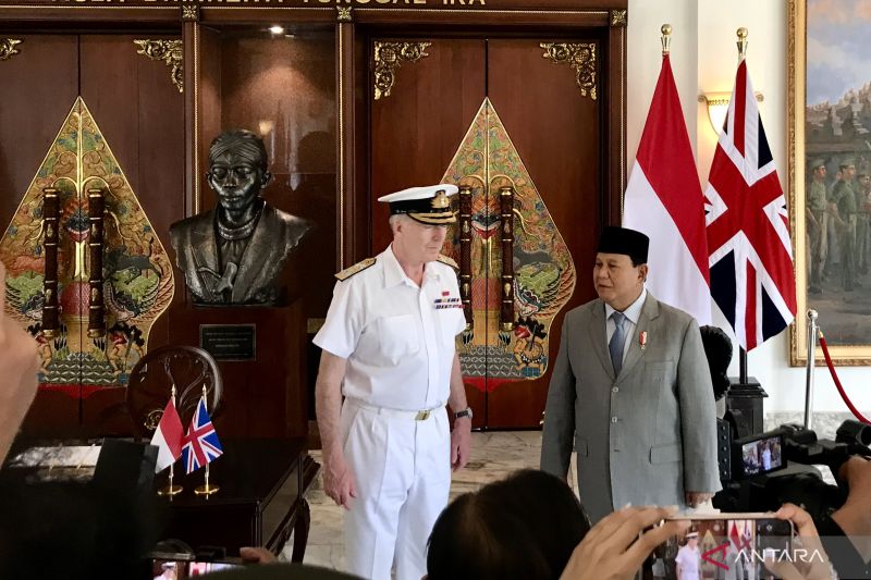 Menteri Pertahanan (Menhan) Prabowo Subianto menerima kunjungan Kepala Staf Pertahanan Inggris Laksamana Antony David …