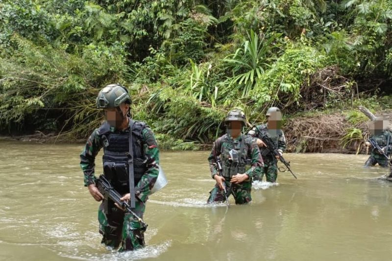 Satuan tugas (Satgas) Batalyon Infanteri 133/Yudha Sakti menguasai markas Organisasi Papua Merdeka (OPM) wilayah hutan …