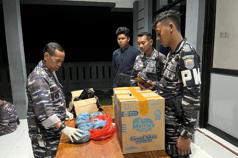 Komandan Lantamal X Jayapura Brigjen TNI (Mar) Ludi Prastyono mengatakan anggota Lanal Nabire mengamankan paket …