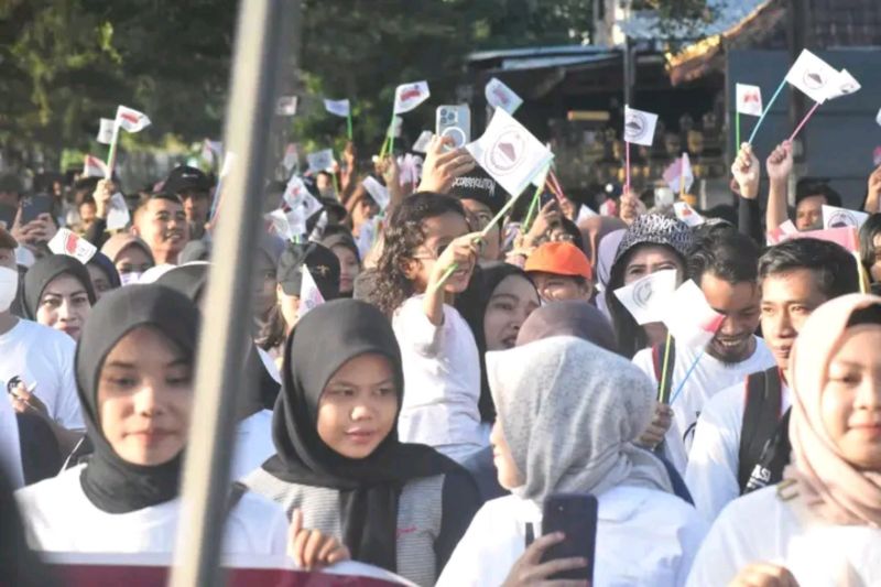 Komisi Pemilihan Umum (KPU) Kabupaten Lombok Utara, Provinsi Nusa Tenggara Barat (NTB) menggelar jalan sehat bersama …