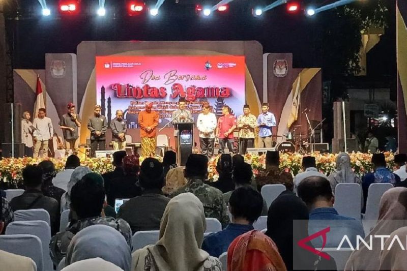 Komisi Pemilihan Umum (KPU) Kabupaten Kediri, Jawa Timur, mengadakan doa lintas agama menjelang Pemilihan Kepala Daerah …