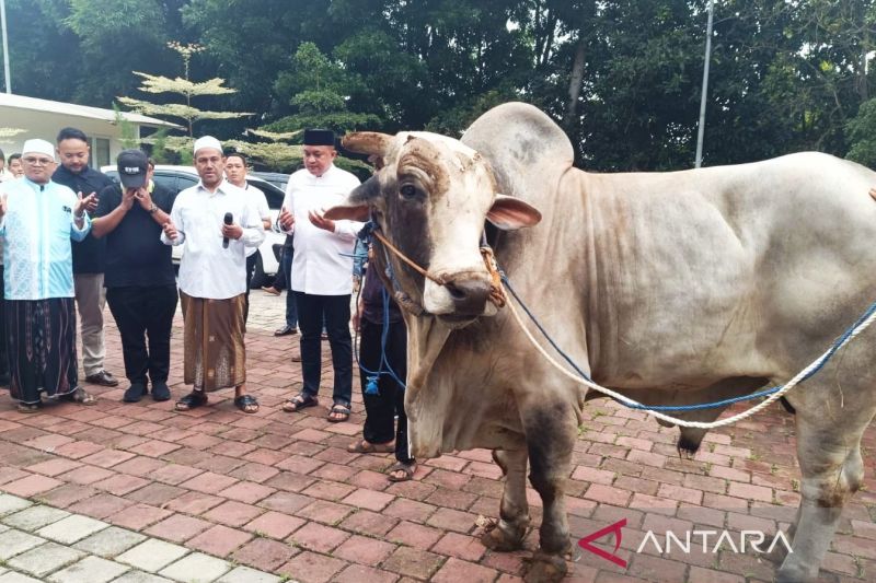Ketua DPRD Kabupaten Bogor Jawa Barat Rudy Susmanto membagikan 48 sapi kurban dari Presiden terpilih Prabowo Subianto …