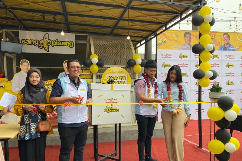 Ketua Umum Partai Solidaritas Indonesia (PSI) Kaesang Pangarep mempersilahkan pemilik usaha kuliner Kebab Turki Baba …