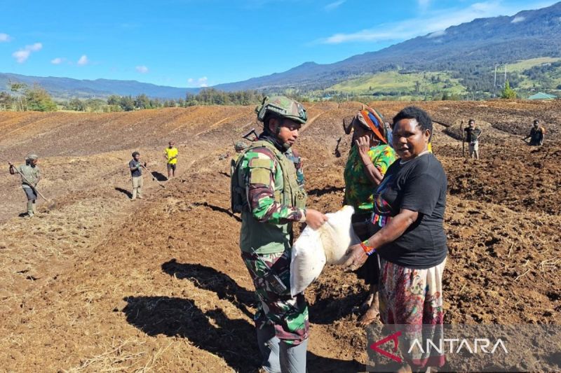 Koops TNI Habema berbagi bahan pokok ke masyarakat Nduga