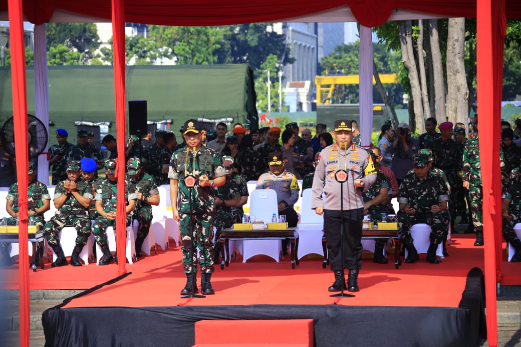 Pada kesempatan yang sama, Panglima TNI mengatakan bahwa TNI menurunkan 100 ribu personil. Pihaknya juga sudah memitigasi potensi-potensi gangguan yang mungkin terjadi. “Ya kita mitigasi terus terkait ancaman dengan berkoordinasi dengan Polri dan satuan intelijen yang ada di wilayah terutama khususnya Jakarta,” ujarnya.