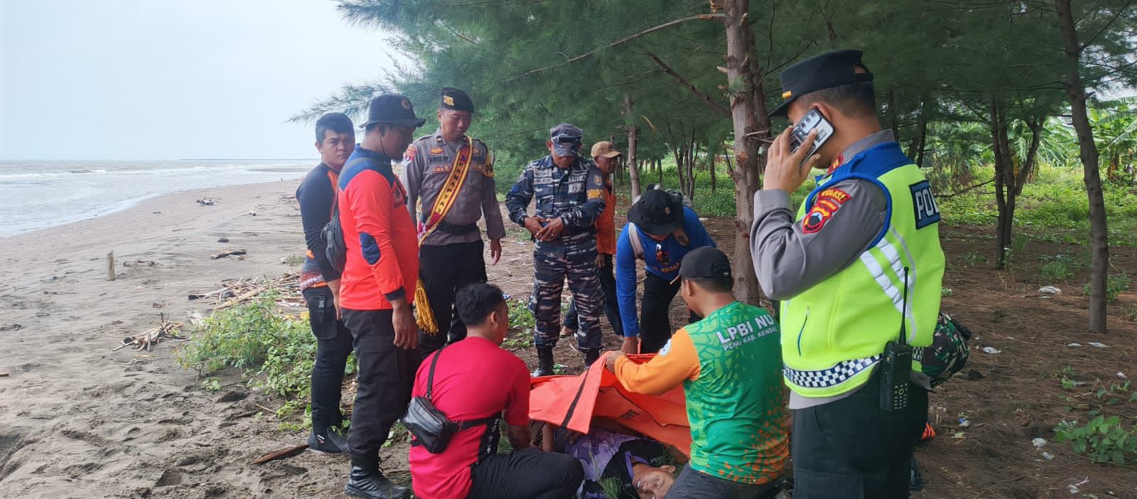 Radarjateng.com,KENDAL — Dua orang meninggal dunia setelah terseret arus sungai lak Pantai Indah Kemangi, Desa Jungsemi, Kecamatan Kangkung, Minggu (16/11/2025) pagi. Polres Kendal bergerak cepat memimpin operasi pencarian bersama unsur TNI, BPBD, dan relawan setempat.