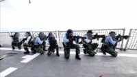 368 Letnan Kolonel Laut (P) Lustia Budi menjelaskan KRI FKO-368 berlatih bersama KRI Sampari-628 dan personel dari …