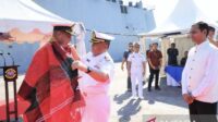 Kapal perang India INS Saryu P54 sandar di Belawan, Sumatera Utara, Kamis, dalam rangka kunjungan persahabatan ke …