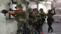 Komando Pasukan Katak (Kopaska) TNI AL menggelar latihan penyergapan di atas KRI Raden Eddy Martadinata-331 (KRI …