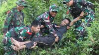 Tim Search and Rescue (SAR) TNI AU dari Pangkalan Udara (Lanud) Adi Soemarmo, Jawa Tengah, mengikuti latihan simulasi …