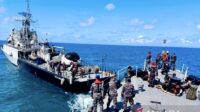 Prajurit TNI Angkatan Laut dari Komando Pasukan Katak (Kopaska) dan prajurit Tentera Laut Diraja Malaysia (TLDM) …