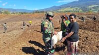 Komando Operasi (Koops) TNI Habema melakukan kunjungan dan komunikasi sosial (komsos) serta membagikan bahan pokok ke …